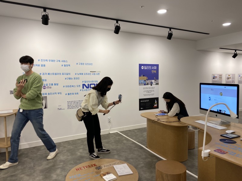 Through this exhibition, which presents various facets of the digital book world including audiobooks, streaming books, AR books, braille smart devices, chat-based e-books, book recommendations, and sentence services from seven participating companies, navigate freely using year-specific hashtags as your compass. As you journey along the timeline, meeting, experiencing, and feeling the diverse aspects of digital books, you will uncover our individual solutions to how books will persevere and progress in this era of monumental media convergence.