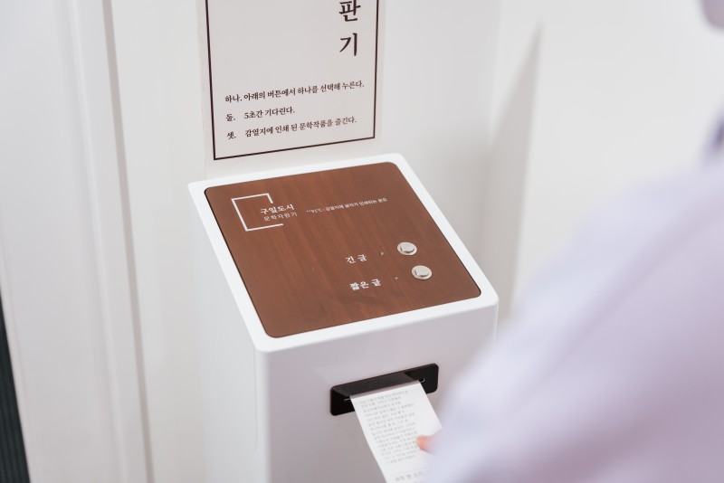 The Literary Vending Machine, named "91-degree," conveys a warm sentiment of ordinary life, with its name signifying the temperature at which letters are imprinted on thermal paper. By pressing the "Long Text" or "Short Text" button, you can encounter various works of literature.
