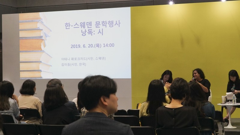 Swedish poet Athena Farrokhzad and Korean poet Kim Yi-deum will read each of their works and converse on their artistic oeuvre.