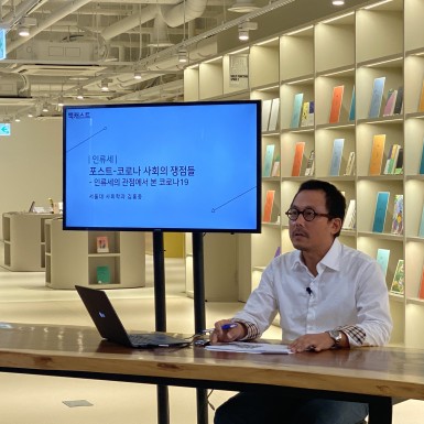 Speakers discuss politics of mask, air, and virus, and explore the effect of the virus and fine dust on humankind. While touching on the double-sidedness of testing kit, speakers explore the idea of social distancing due to COVID-19 from a new angle.