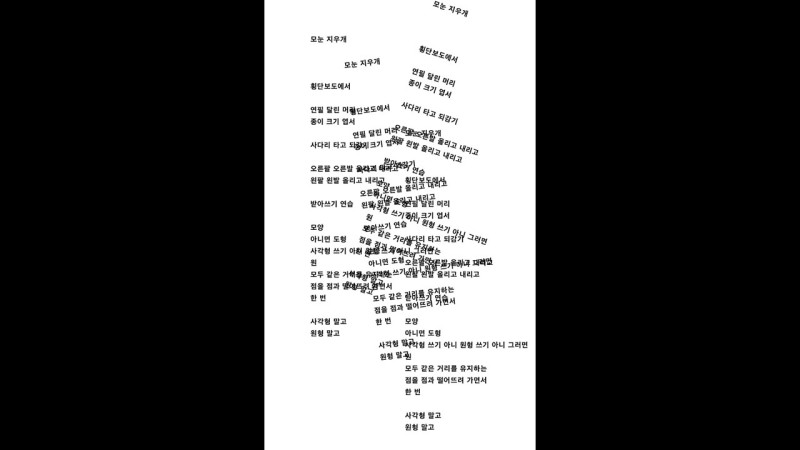 Grid Eraser is the first collection of poetry by Kim Nuiyeon and the first publication by Oemil. The book is composed of three parts and 71 poems, with 10 poems in Part 1, 59 poems in Part 2, and one poem each in Part 3 and on the cover. Part 1 focuses on word selection, text layout, and the sound of speech; Part 2 arranges and combines words to create new forms and meanings that reflect each other; and Part 3 gives a glimpse into Kim’s next book. The title of the book is composed of words taken from the poet’s work and repeats the word “grid eraser.” Grid Eraser stands as an impeccably well-made book even without the jury’s equal praise for all aspects of it. Words link to words in this series, clearly demonstrating the publisher’s intention and the designer’s execution. The font is particularly notable in its role in ensuring that Kim’s diverse styles do not clash, but complement each other.