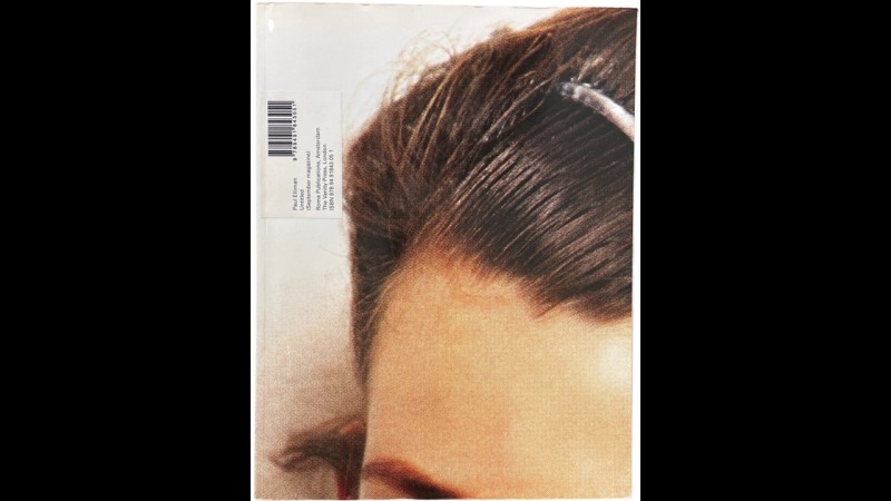 Designed by Paul Elliman, Untitled (September Magazine) is composed of 600 pages of images from various sources, such as fashion magazines, glamor photographs, and pornography, cut and arranged in a way that emphasizes the beauty of the body in segments. The images feature a spectrum of clothed, semi-naked, and nude subjects and focuses on hands, arms, legs, feet, torsos, and more private body parts. Turning the pages of this book, devoid of any text or commentary, is like meditating on the human body and falling deeper into iconographic exhibitionism—the use of reflective glossy paper serves only to enhance this charismatic expression. The cover consists only of a close-up of a person’s forehead and a barcode. Similarly, there is nothing on the back cover but rippling Yves Klein blue. Inside, the book catches shots of beautiful bare feet, Prince of Wales check pleats, pointing gestures, and hands holding objects. It would be too simple to call this book an artistic parody because it penetrates the visual code in which we are trapped and reframes our desires as despair.